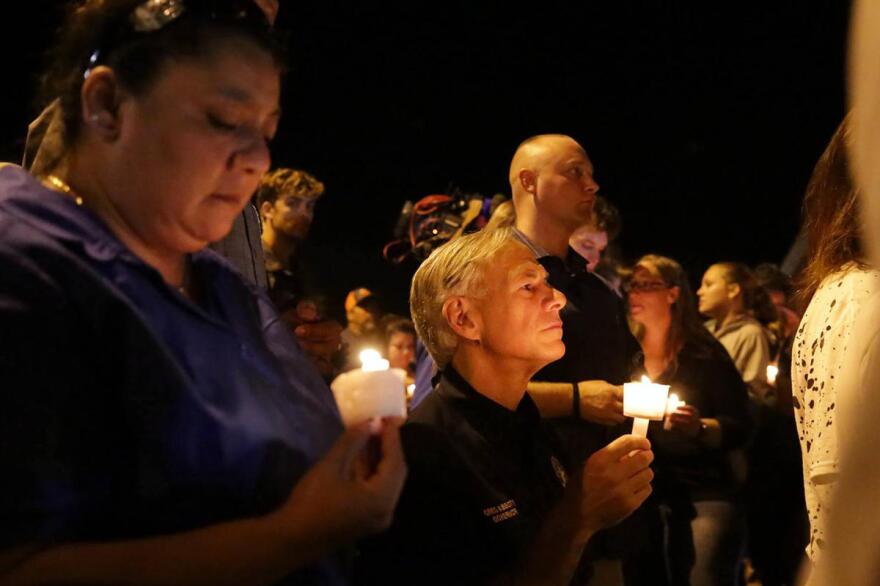 Texas Governor Greg Abbott attends a candlelight vigil on Sunday, November 5, 2017 after a gunman killed 26 people at a church in Sutherland Springs, TX.